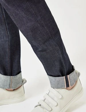 Featuring five pockets, a button fly and contrasting topstitching.