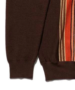 We use carefully selected Australian Merino (EXTRAFINE MERINO). The off-scale processing that removes scales called the scale of the hair surface realizes a soft texture, color development, and puffiness. The front body uses a multi-color horizontal stripe of 14G Tenjiku knitting horizontally, and the vertical stripe looks. By making the back body and both sleeves into a 14G deformed knit, it is designed to reduce stress when wearing.