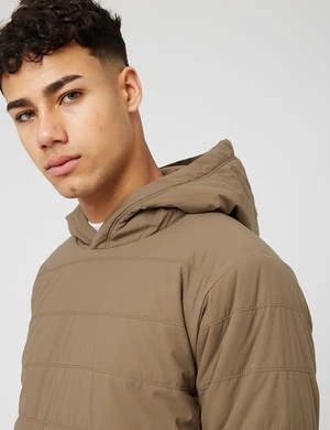 The Flexible Insulated Hoodie features a hood and dual side pockets.