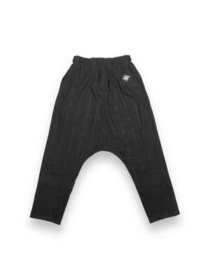 REMADE pants made from upcycled vintage fabric. The jacquard fabric sourced from the countryside of Hungary is made by alternating matte and shiny threads and was originally used as skirts. The braided cotton cords are reminiscent of trappings.